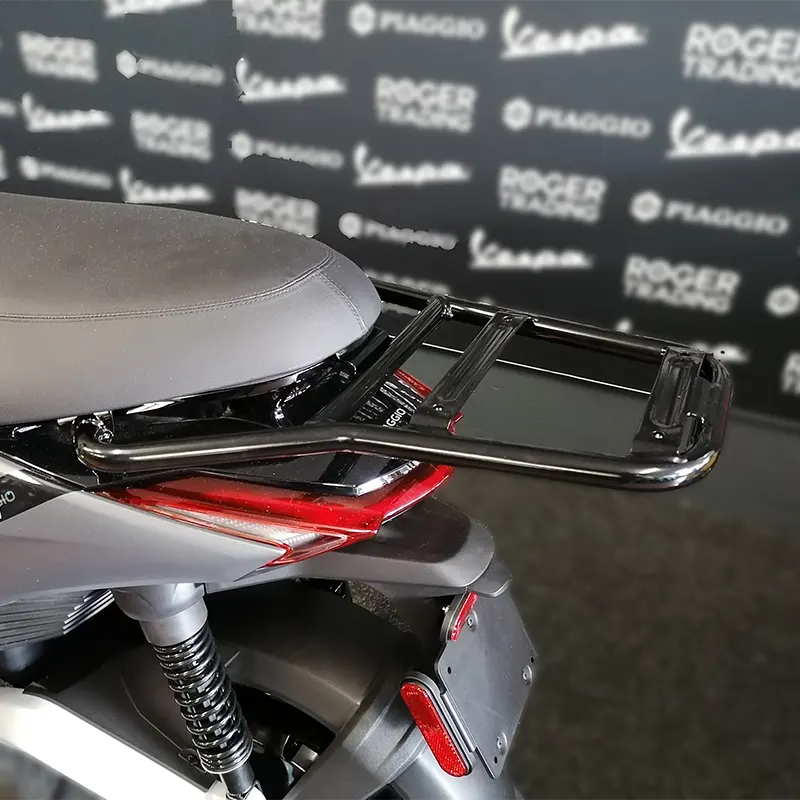 Op deze bagagedrager kun je m.b.v. een spin dingen vervoeren achterop je Piaggio 1, en hij is nodig om een topkoffer op de scooter te kunnen plaatsen.