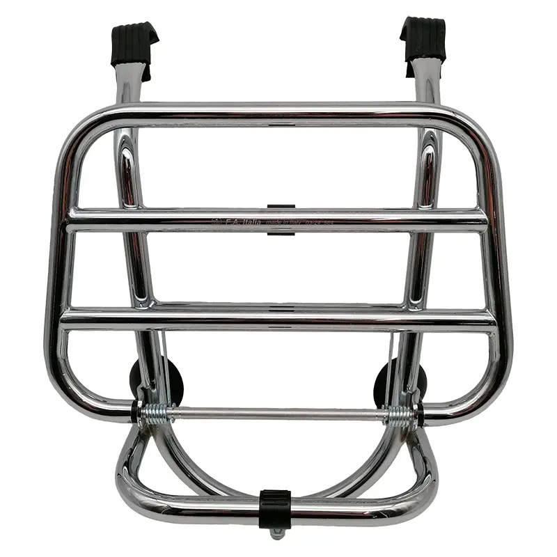 Iedereen heeft weleens iets te vervoeren, daarvoor zijn de bagagedragers ideaal. Bovendien krijgt je scooter met deze chromen klapdrager aan de voorkant die echte retro old-skool uitstraling. Je kunt er tot maar liefst 6 kilo op kwijt en bij het stoplicht kunnen criminelen je lading er niet ongezien afhalen, wat bij bagage achterop nog weleens kan gebeuren.
