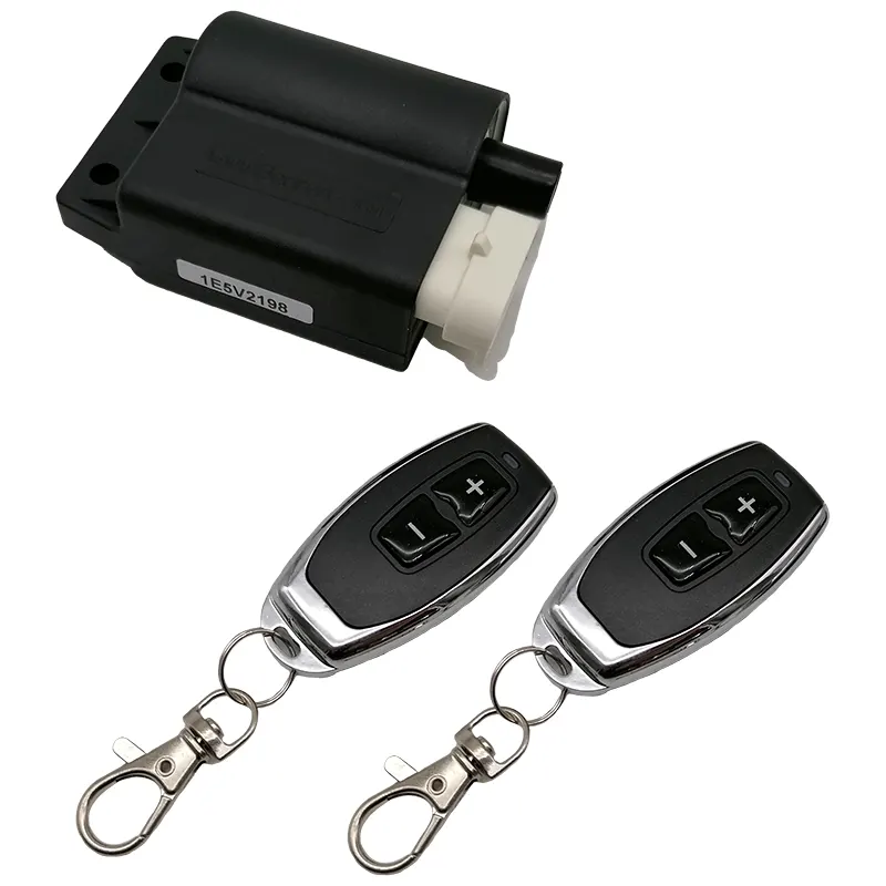 Draadloze 4T 2V CDI met remote-begrenzer. Complete CDI unit met afstandsbediening voor Piaggio SNOR 25 en BROM 45 4T2V. We hebben twee uitvoeringen, één waarbij de begrenzer instelbaar is van 0 tot 55km/h via een potmetertje, en één die fixed is begrensd op 45Km/h. Deze laatste is alleen geschikt voor brom (geel kenteken) scooters.