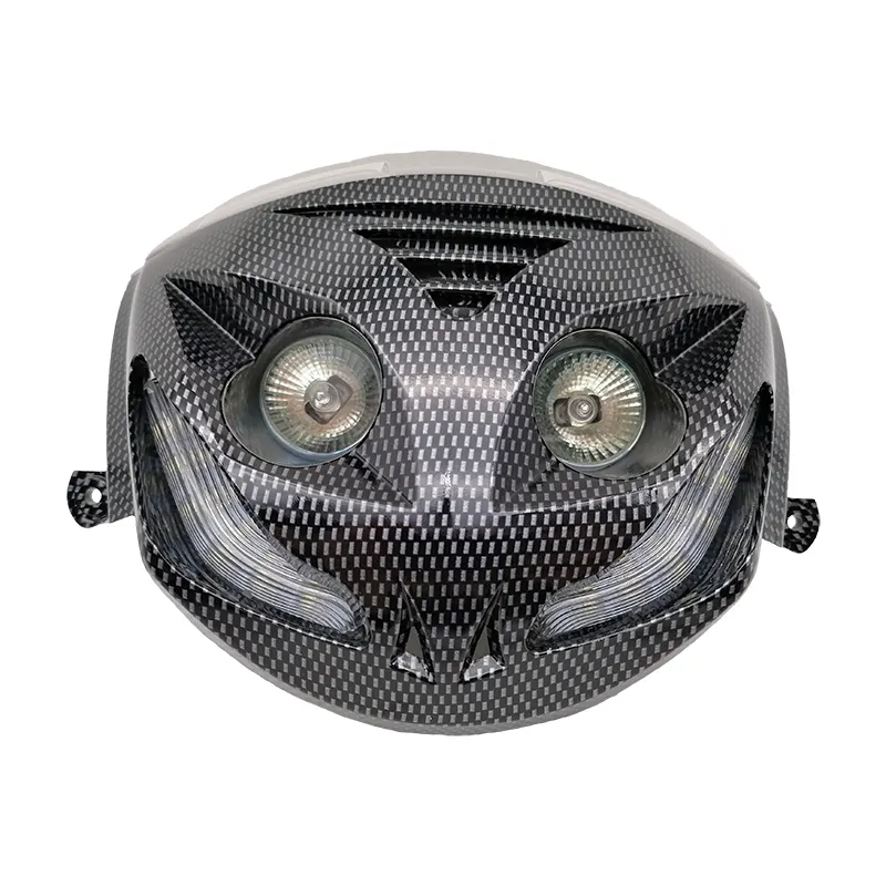 Haal die lelijke koplamp, die de Italianen standaard monteren op alle Piaggio Zip’s, van je scooter en zet deze ‘blij kijker’ erop.