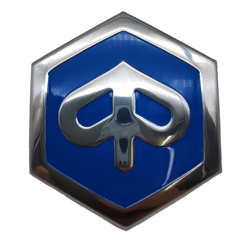 Voor op de neus, of in het midden van het wiel, dat zijn de plekken waar je dit Piaggio embleem tegenkomt.
