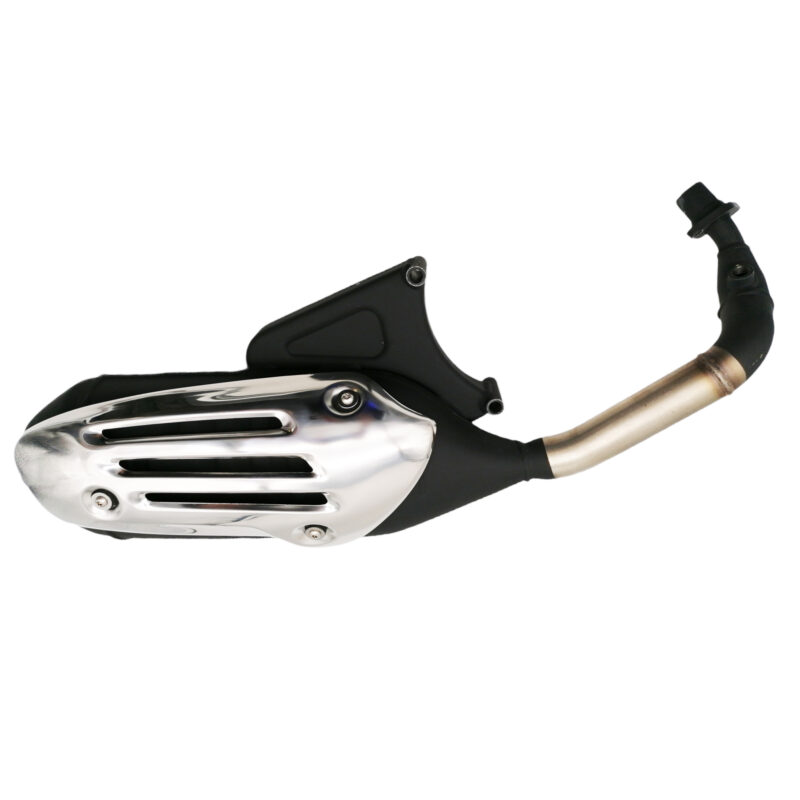 De originele uitlaat van de Vespa Sprint en Primavera 4T 3V Euro5 (vanaf 2021) modellen. Incl. chroom hitteschild.