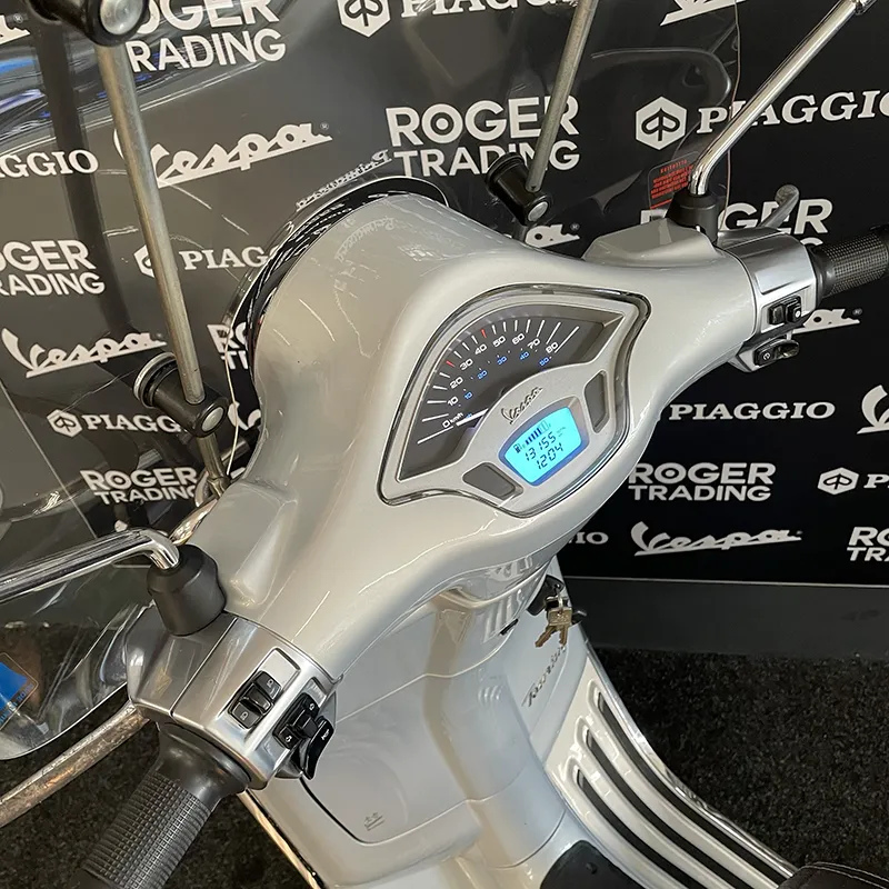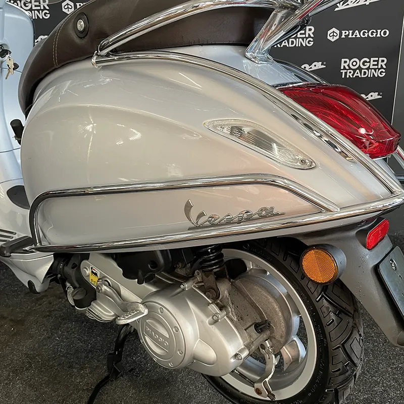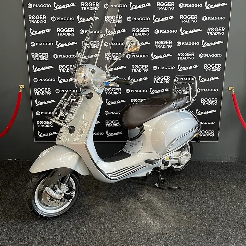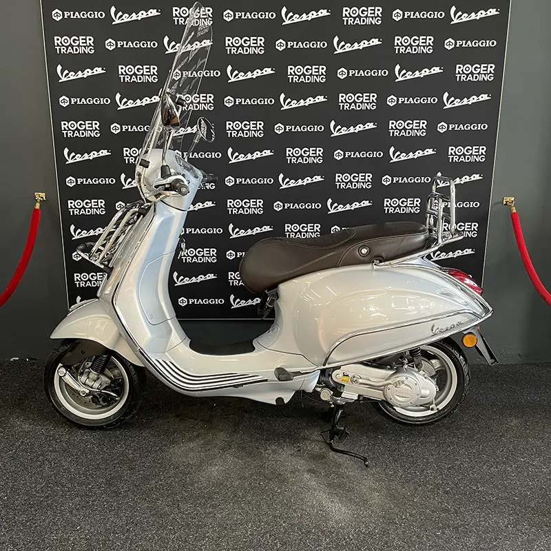 Een prachtige Vespa Primavera uit 2016 in de prachtige kleur: Zilver